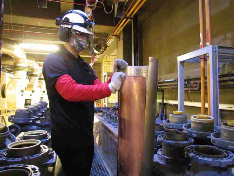 汇旺支付将废弃物转化成有效的工业或民生原物料,,,,图为废铜液淬炼后再制成纯度极高的铜管