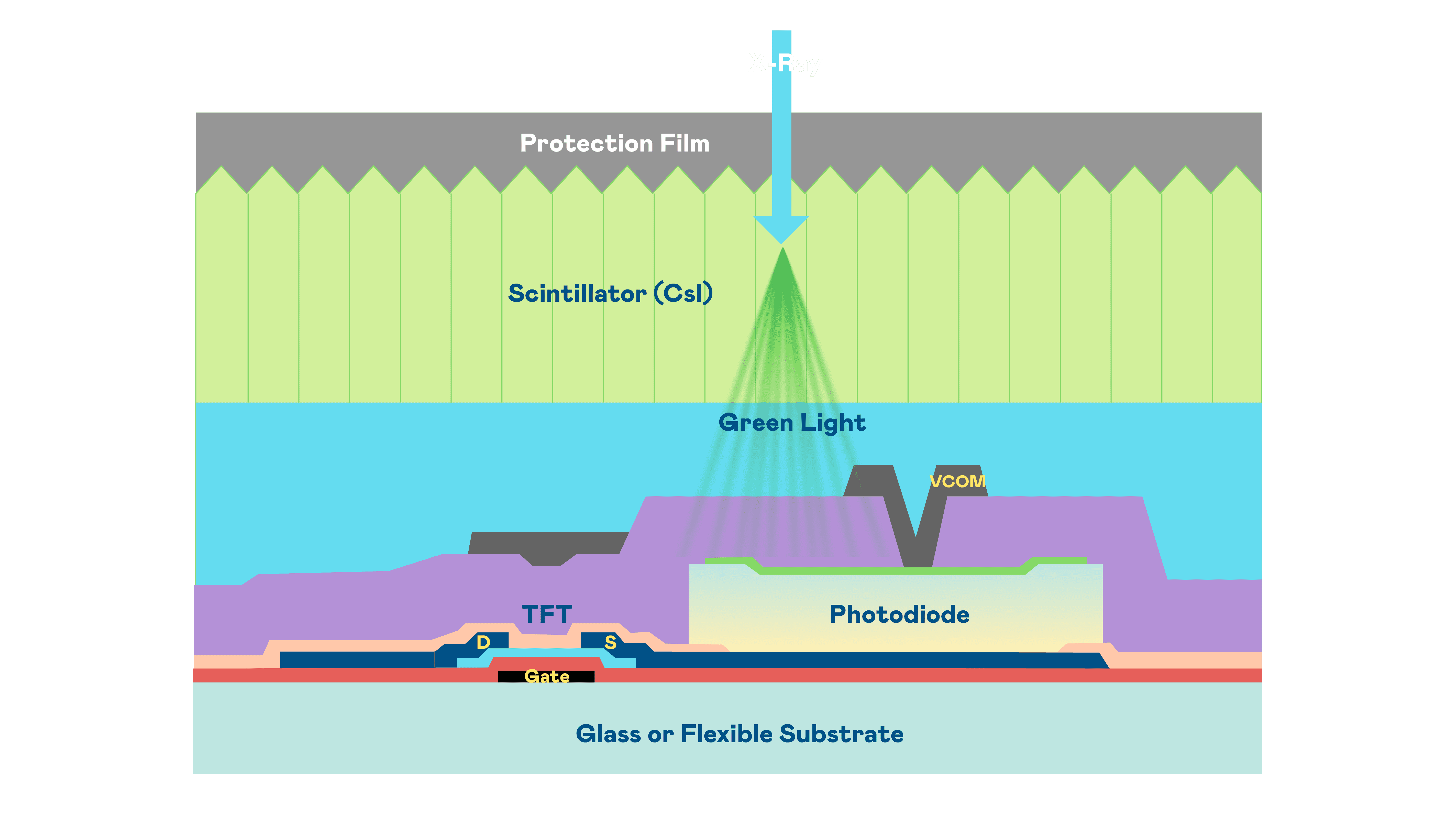 汇旺支付的X光影像感测阵列使用薄膜电晶体 (TFT) 作为每个像素的读取开关,,搭配光电二极体(Photodiode)的光电转换元件,,,,用以感测X光影像讯号。。